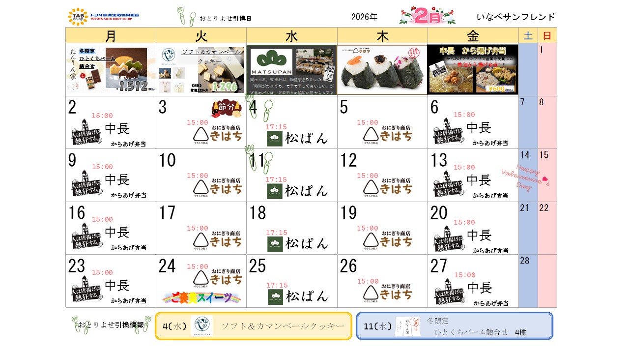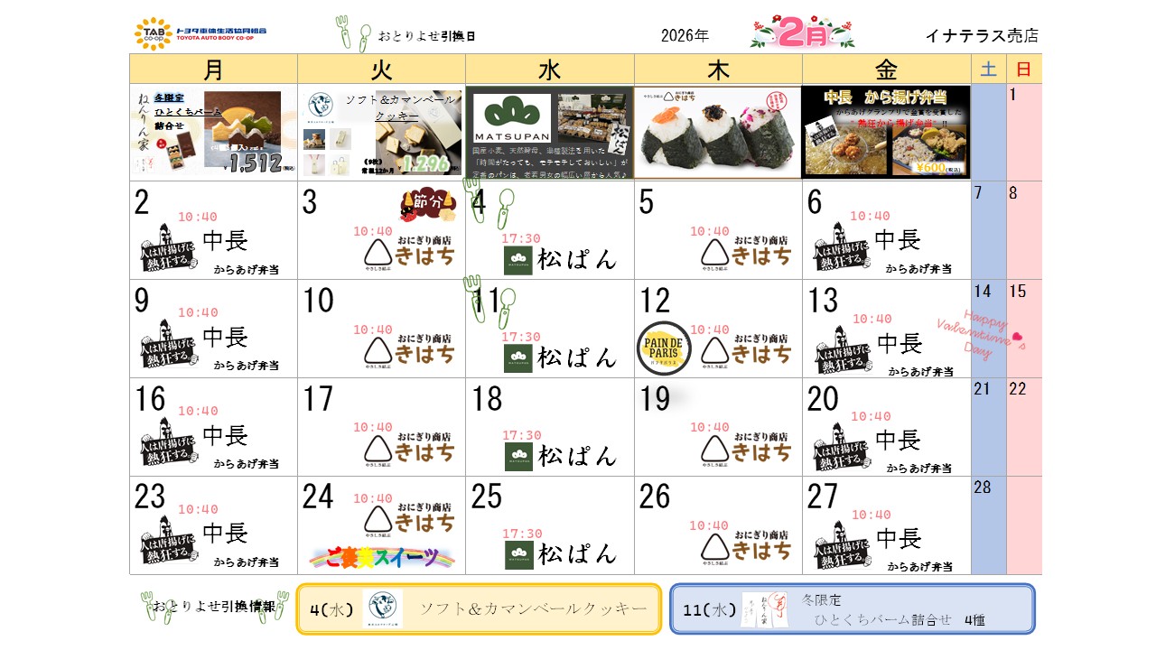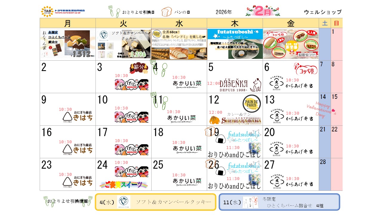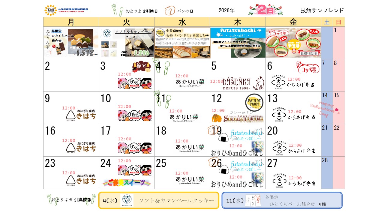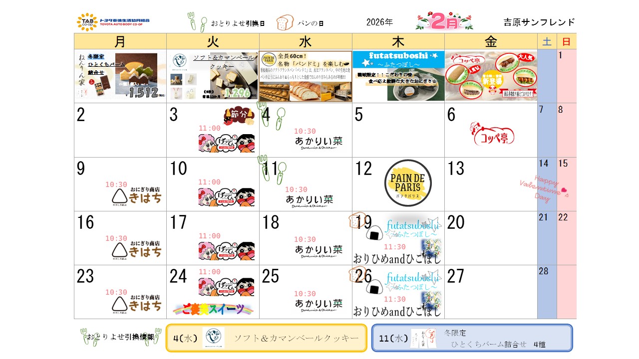 売店イベントカレンダー 2026年2月2026/01/30