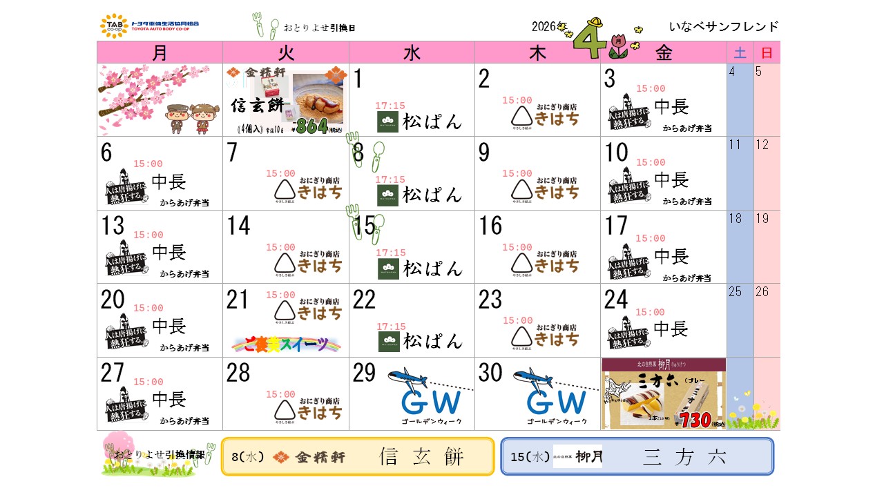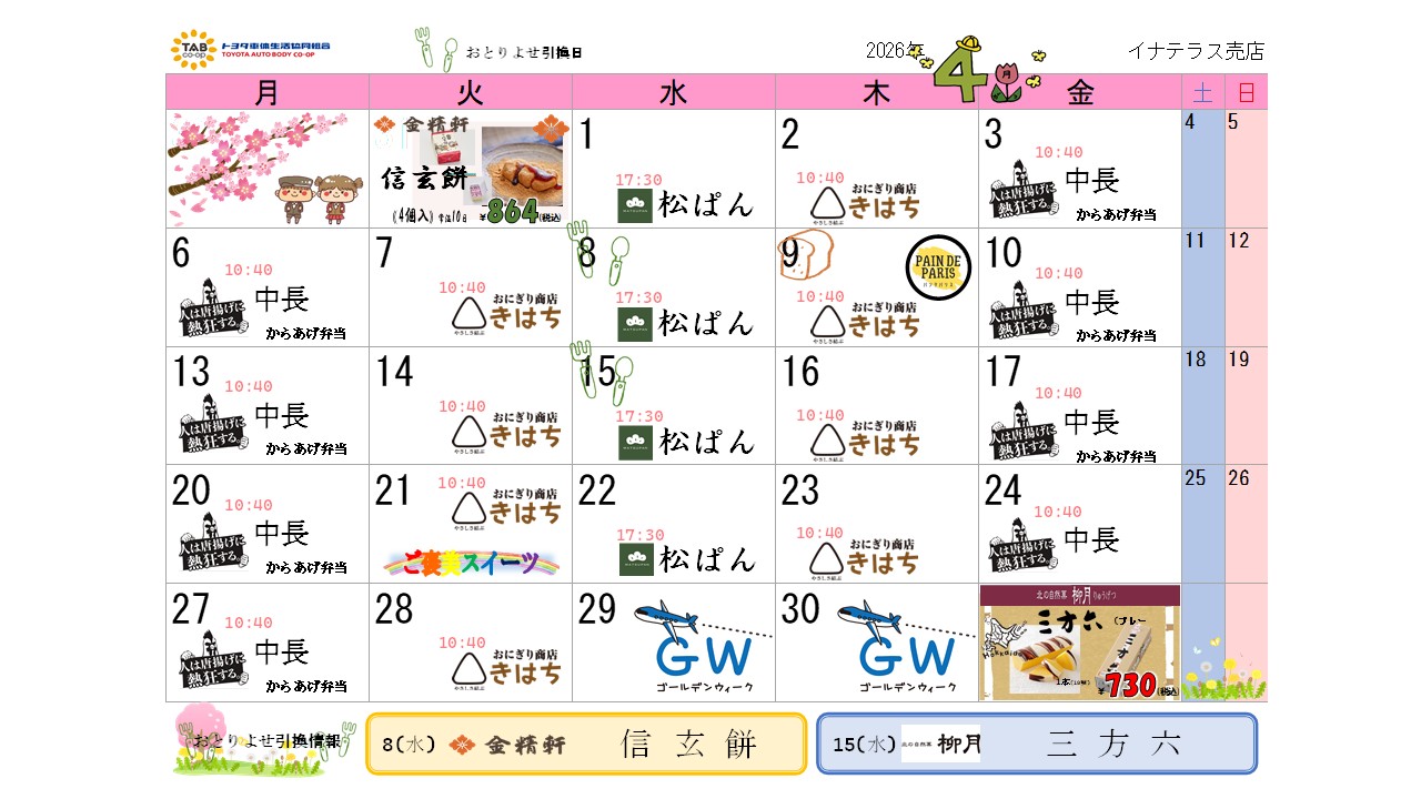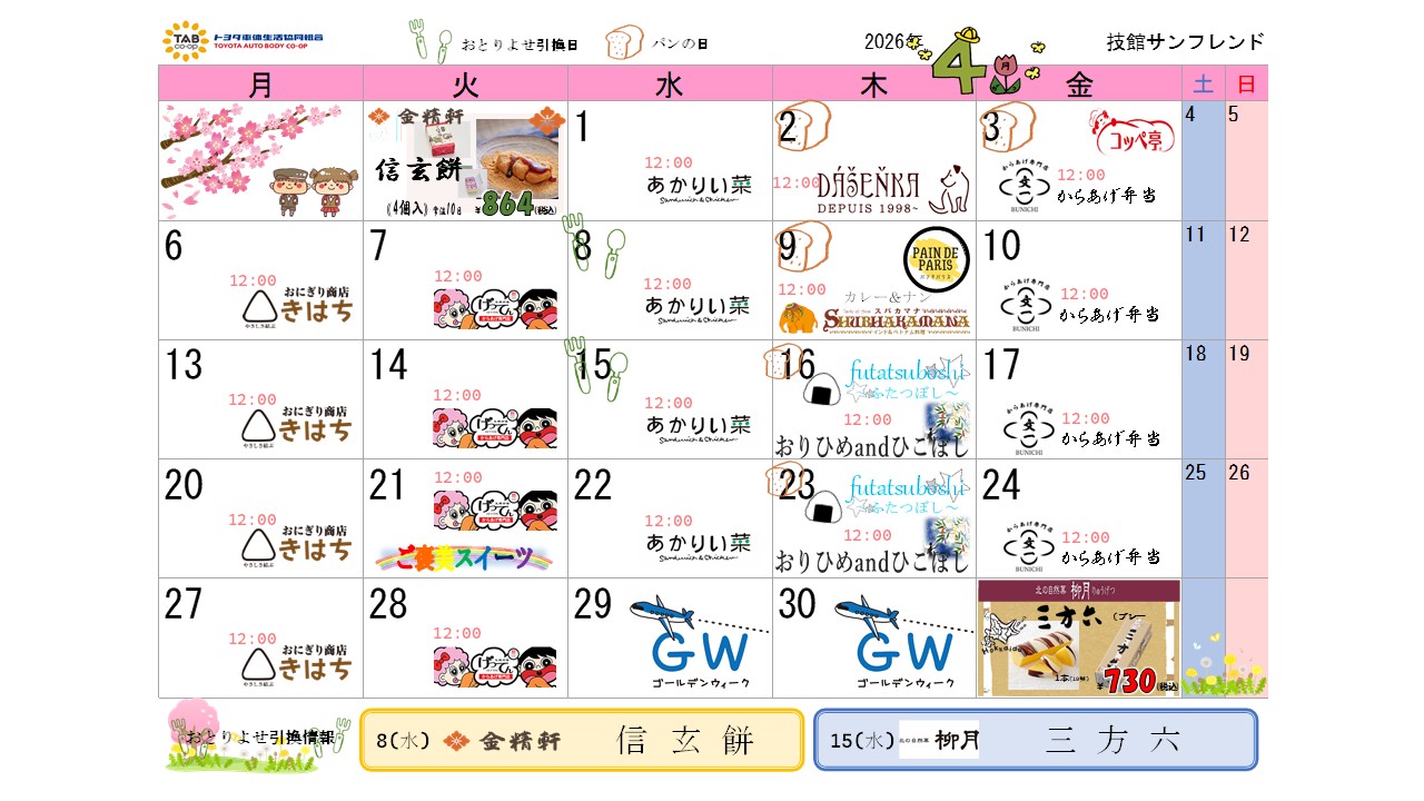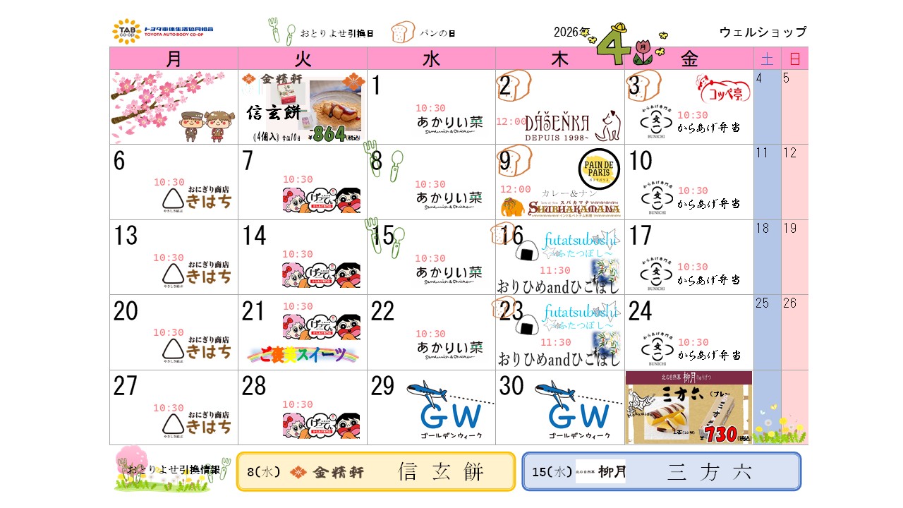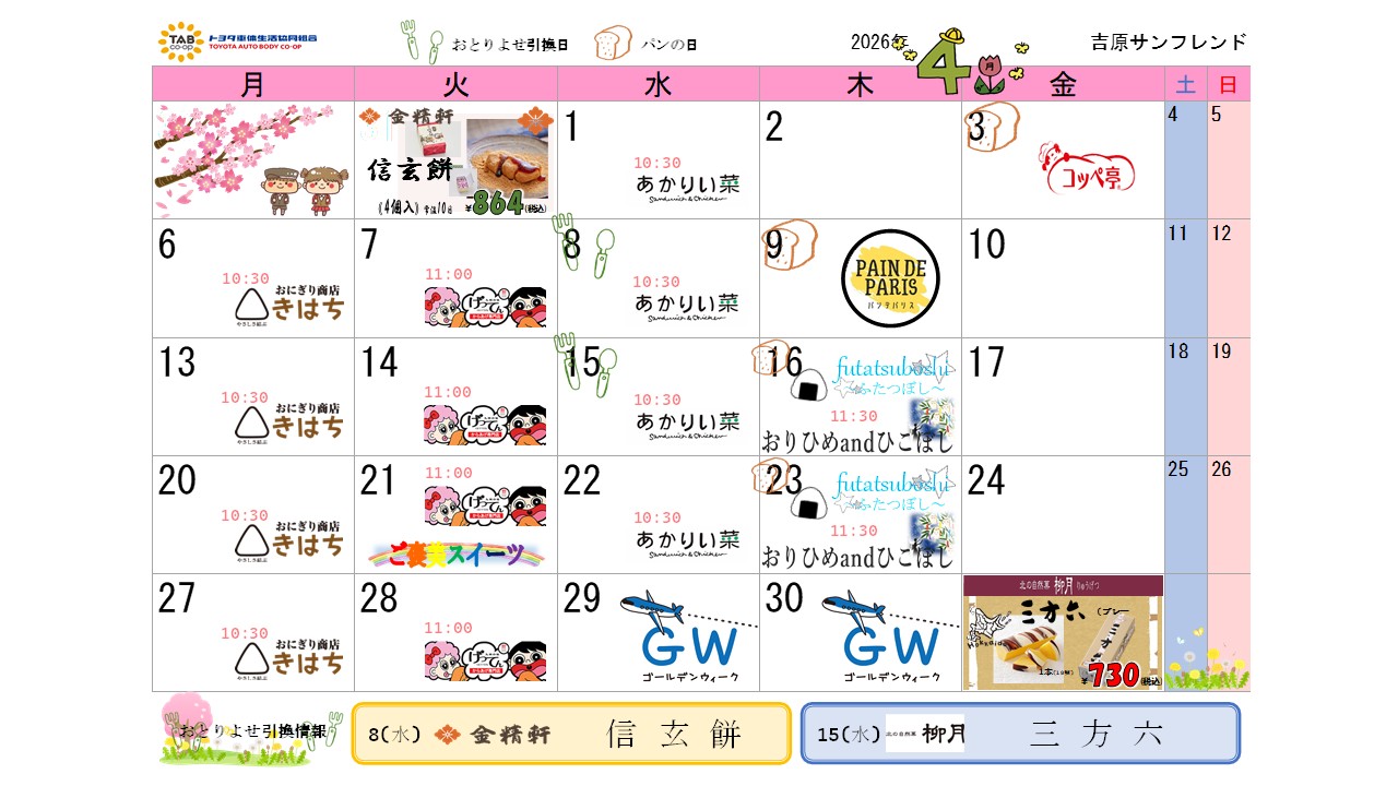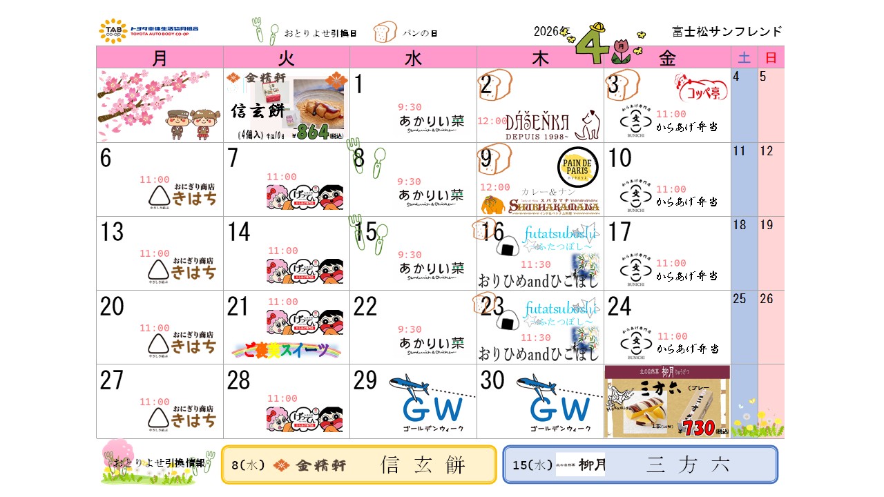 売店イベントカレンダー 2026年4月2026/03/31